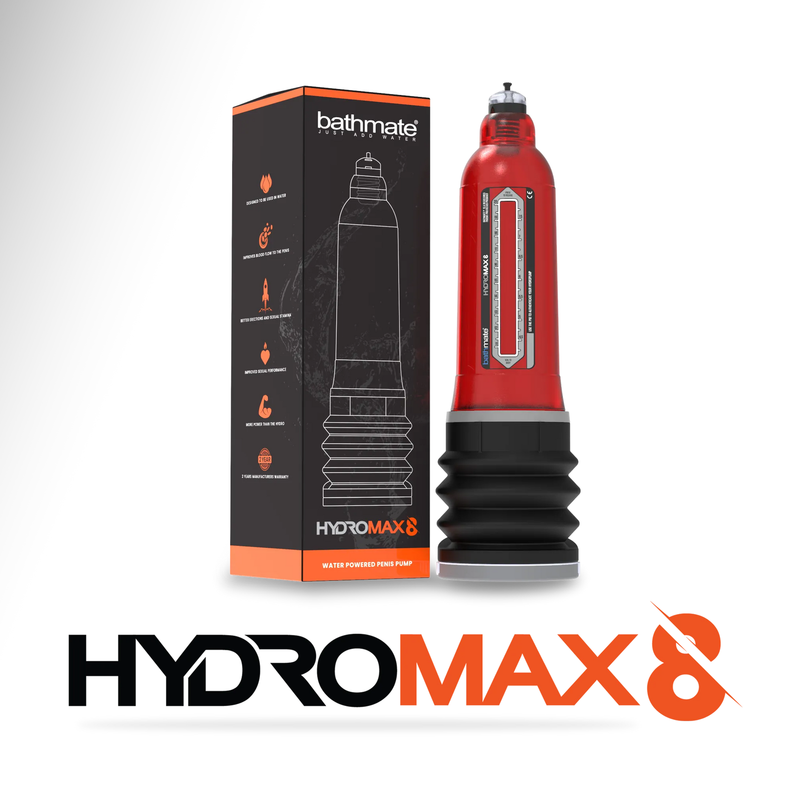 Ideal for users measuring 6 to 8 inches when erect, the Hydromax8 is the newest Bathmate model to be released in 2024, that neatly fits right between the Hydromax7 and Hydromax9 models.